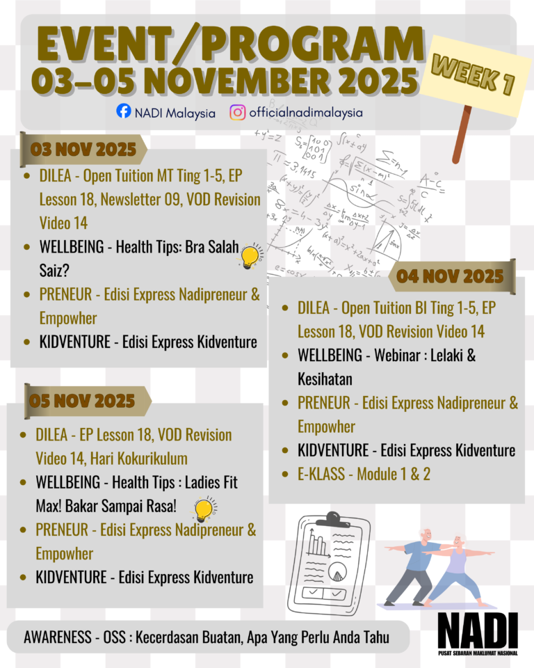 JADUAL EVENT/PROGRAM PERKHIDMATAN PINTAR MINGGU 1 (3 NOV & 5 NOV 2025)