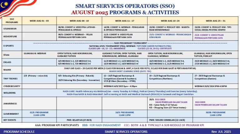 JADUAL PROGRAM PERKHIDMATAN PINTAR BULAN OGOS 2025