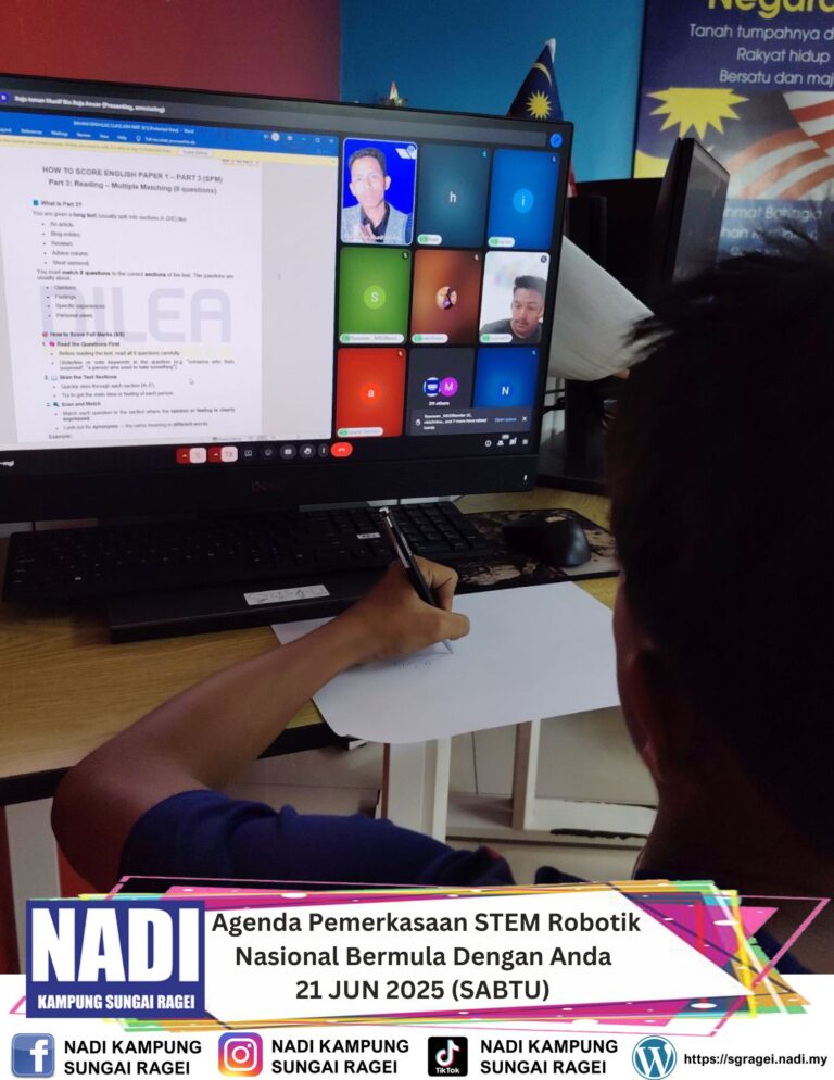 NADI Kampung Sungai Ragei telah mengadakan NADI x DilEA: Open Live Class Bahasa Inggeris pada 01 Julai 2025, Selasa bermula pada jam 03.30 petang sehingga 04.30 petang.