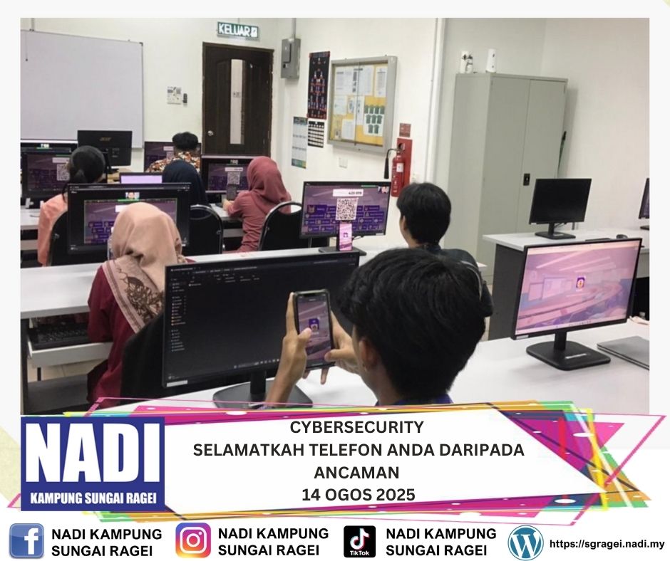AKTIVITI NADI Kampung Sungai Ragei telah Webinar Nadi X Cybersecurity : Selamatkah Telefon Anda Daripada Ancaman pada 14 Ogos 2025, Khamis bermula pada jam 03.00 petang sehingga 04.30 petang. TUJUAN Webinar ini bertujuan untuk memberi pededahan dan membincangkan keselamatan telefon […]